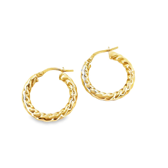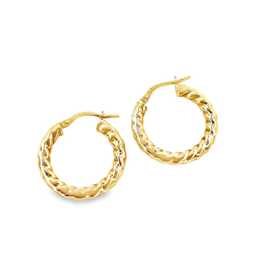 Crafted from 9ct yellow gold, these twist hoop earrings add a touch of elegance to any outfit. With a weight of 2.1g, they are lightweight and comfortable to wear. Perfect for everyday wear or special occasions, these hoops are a timeless addition to any jewelry collection.